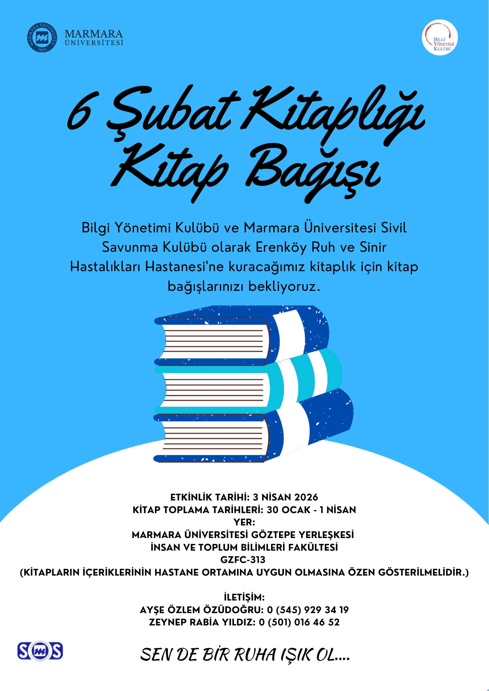 Bu etkinliğin amacı;Erenköy Ruh ve Sinir Hastalıkları Hastanesi’nde, hastaların yararlanabileceği nitelikli bir kitaplık oluşturarak psikososyal durumlarına katkı sağlamaktır. Ruh sağlığı alanında hizmet veren kurumların, hastaların tıbbi ihtiyaçları yanı sıra psikososyal ihtiyaçlarının da desteklenmesi büyük önem taşır. Bu bilinçle düzenlenen etkinlikte; hastaların tedavi süreçlerini destekleyici, güvenli bir okuma ortamı oluşturulması ve üniversite-toplum işbirliği çerçevesinde sosyal sorumluluk bilincinin kazandırılması hedeflenmektedir. Erenköy Ruh ve Sinir Hastalıkları Hastanesi’nde tedavi gören hastalar ve hastane bünyesinde görev yapan sağlık çalışanları etkinliğin hedef kitlesini oluşturmaktadır. Etkinlik kapsamında bağış yoluyla kitapların üniversitemizde GZFC-313’te toplanması ardından hasta mahremiyeti ve etik ilkeler gözetilerek seçilen eserlerden oluşan bir kitaplık kurulması amaçlanmaktadır. Bu proje kitaplar aracılığıyla sürdürülebilir bir sosyal sorumluluk çalışmasıdır.
