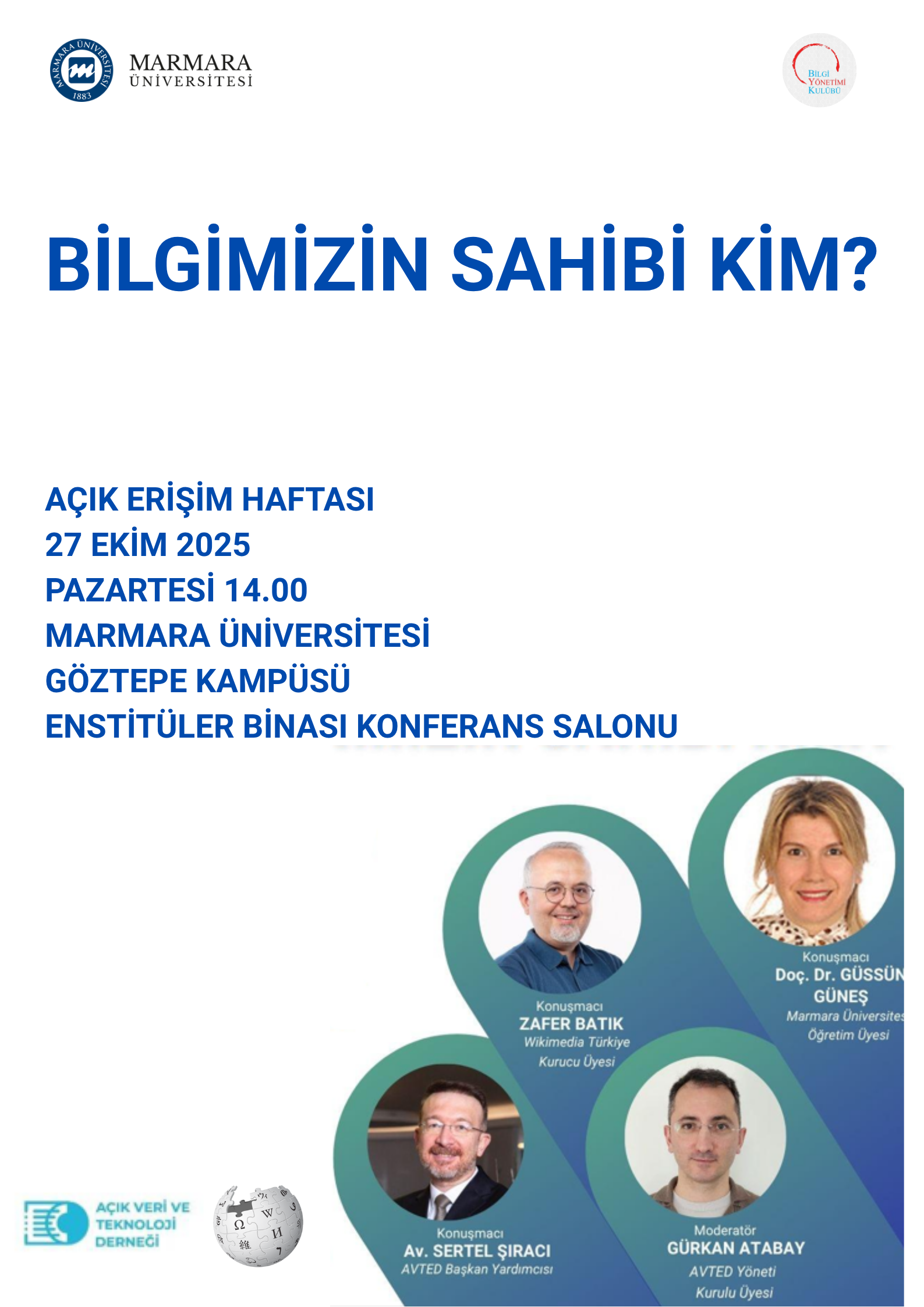 "Bilgimizin sahibi kim?” teması, içinde bulunduğumuz hızlı değişim ve belirsizliklerle dolu çağda bireylerin ve toplumların üretilen bilgi üzerindeki denetimi nasıl yeniden kazanabilecekleri sorusunu gündeme getirmektedir. Etkinlikte, bilginin nasıl üretildiği, paylaşıldığı, hangi kaynaklardan beslendiği ve kimlerin sesinin duyulup kimlerin duyulmadığı gibi konular üzerine düşünmeye davet etmektedir. Bilgi Yönetimi Kulübü olarak düzenlenen bu etkinlikle, sorulara yanıt aramak; bilginin üretimi, paylaşımı ve kontrolü konularında Marmara Üniversitesi öğrencilerine yeni bakış açıları kazandırmak amaçlanmaktadır.