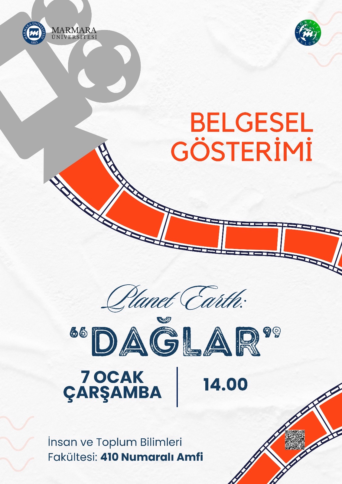 Planet Earth: “Dağlar” Belgesel Gösterimi, katılımcıların dağlık alanların oluşum süreçlerini, iklim, ekosistem ve insan yaşamı ile olan ilişkisini görsel örnekler üzerinden kavramasını amaçlamaktadır. Etkinlik, özellikle fiziki coğrafya konularının somutlaştırılması, dağ ekosistemlerinin biyolojik çeşitlilik ve su kaynakları açısından öneminin vurgulanması ve çevresel farkındalığın artırılmasını hedeflemektedir. Coğrafya öğrencileri başta olmak üzere doğa ve çevre konularına ilgi duyan üniversite öğrencilerini hedefleyen bu etkinlik, teorik bilginin görsel materyallerle desteklenerek kalıcı öğrenmeye katkı sağlamayı amaçlamaktadır.