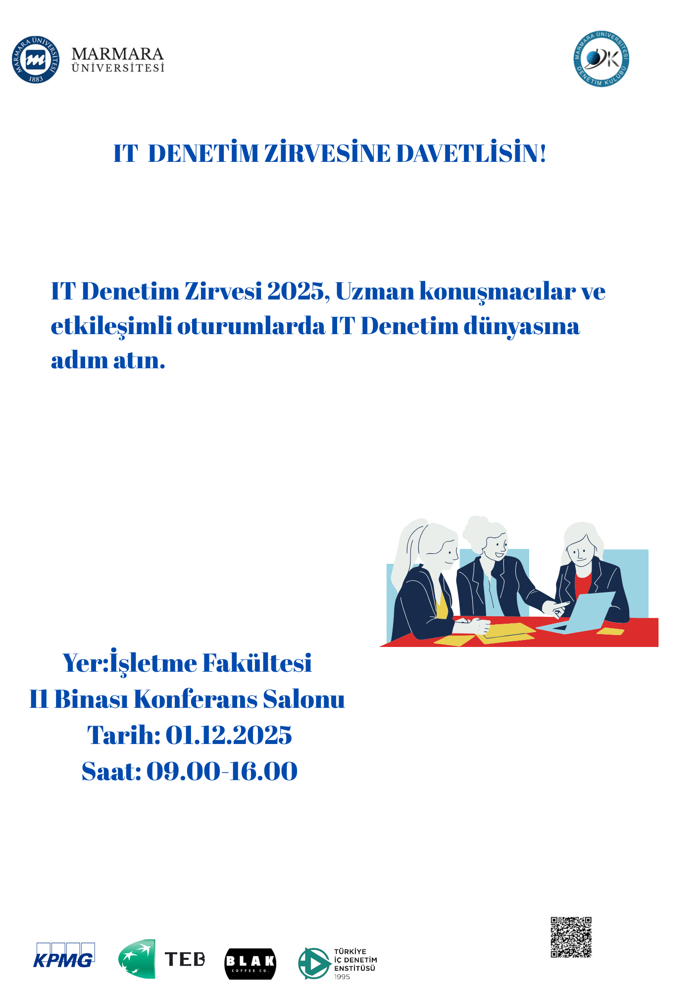 IT Denetim Zirvesi, bilgi teknolojileri alanında denetim, güvenlik ve risk yönetimi konularında farkındalık oluşturmayı amaçlayan bir etkinliktir. Alanında uzman konuşmacıların katılımıyla gerçekleşecek zirvede, öğrenciler ve sektör temsilcileri bir araya gelerek güncel gelişmeleri, kariyer fırsatlarını ve sektörel deneyimleri paylaşma imkânı bulacaktır.
