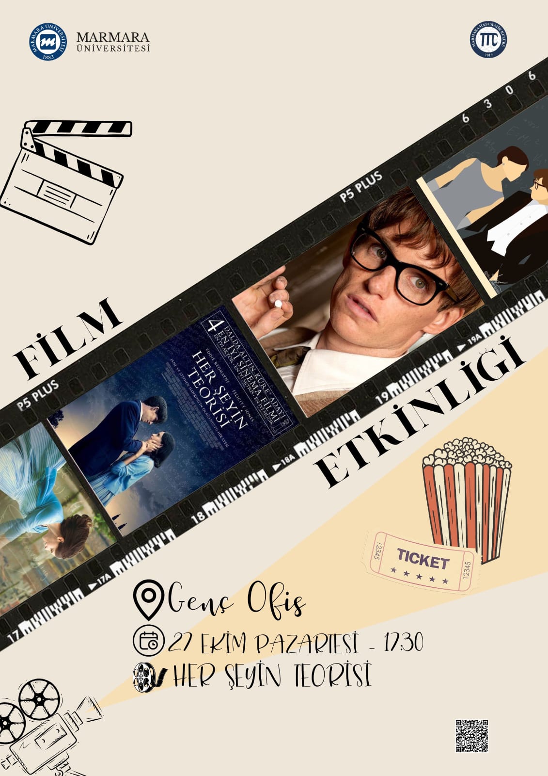 Derslerin ağır temposundan bir nebze sıyrılarak kendimize güzel bir sosyal aktivite olması adına bir film gecesi düzenliyoruz. Derslerimizin bitiminde Göztepe kampüsünde bulunan Genç Ofis'te "Her Şeyin Teorisi" adlı filmi gösterime sunacağız. Stephen Hawking'in hayatını konu alan bu film ile arkadaşlarımıza keyifli bir vakit geçirme imkanı sunmayı hedefliyoruz.