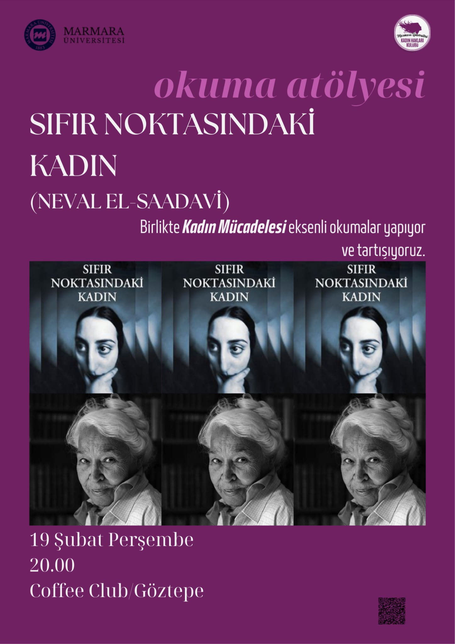 Marmara Üniversitesi Kadın Hakları Kulübü olarak düzenlediğimiz bu atölyede, daha önce okumuş olduğumuz "Sıfır Noktasındaki Kadın" kitabının tahlili yapılacaktır. Etkinlik boyunca kitabın tarihsel bağlamı, yazarın üslubu ve günümüz kadın hakları mücadelesiyle olan paralellikleri interaktif bir moderasyon eşliğinde ele alınacaktır. Bu etkinliğin temel amacı, Neval El Seddavi’nin kült eseri üzerinden toplumsal cinsiyet rolleri, kadın hakları ve sistem içerisindeki kadın emeği konularını derinlemesine analiz etmektir.