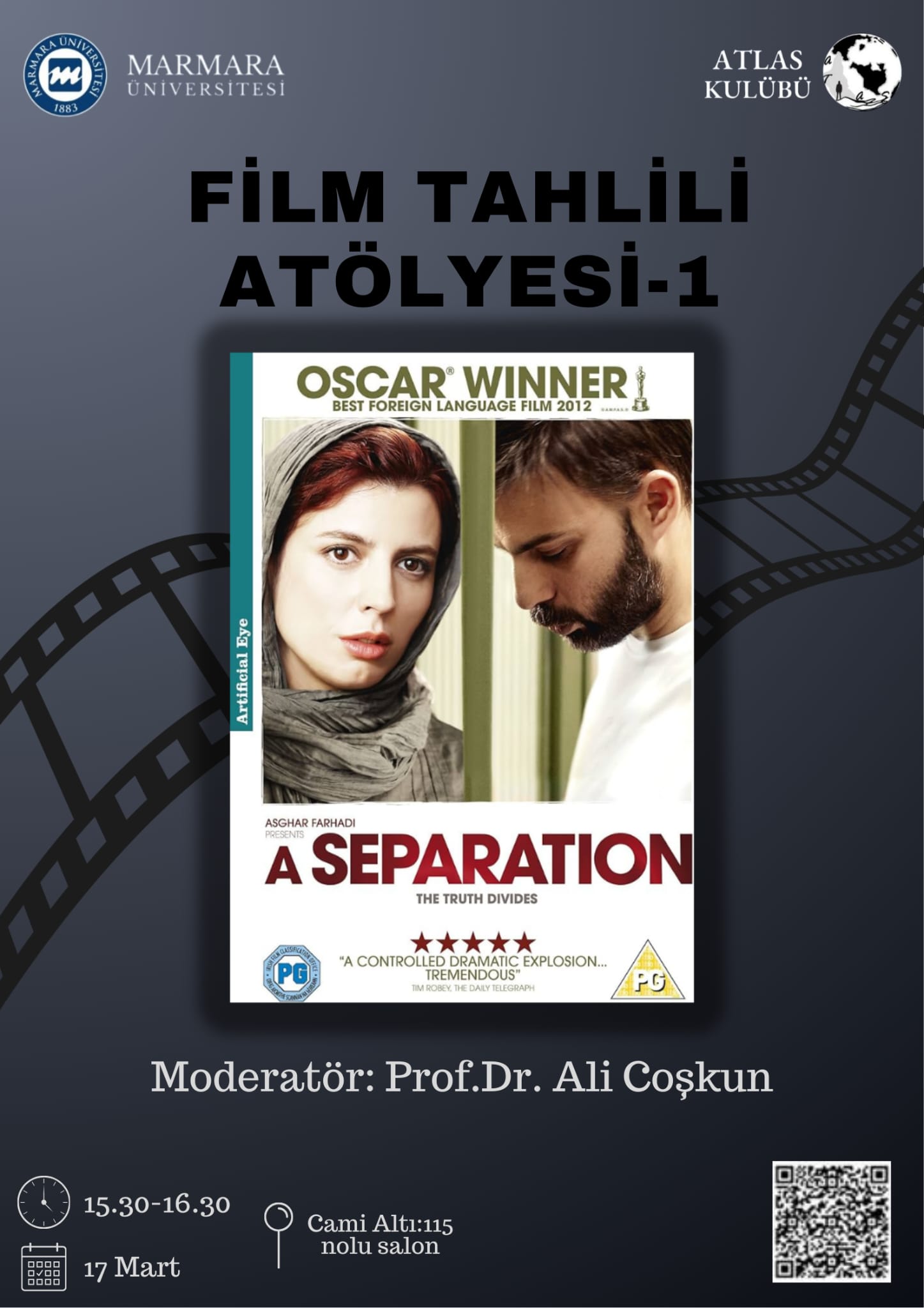 Sinemayı sadece bir vakit geçirme aracı değil, hayatın içindeki adalet ve aile gibi önemli konuları anlamamıza yardımcı olan bir rehber olarak görüyoruz. Bu doğrultuda, Prof. Dr. Ali Coşkun hocamızın katılımıyla İran sinemasının başyapıtlarından A Separation filmi üzerine bir tahlil etkinliği planlıyoruz. Sadece Marmara Üniversite öğrencilerinin katılımına açık olacak bu programda, filmdeki karakterlerin yaşadığı zorlukları ve ahlaki ikilemleri öğrenci arkadaşlarımızla birlikte konuşmayı amaçlıyoruz. Sinemanın derinliklerine inerek toplumsal meseleleri farklı yönleriyle tartışmak ve ortak bir fikir zemini oluşturmak istiyoruz. Bu etkinlikle, üniversite öğrencilerinin hem bakış açılarını genişletmelerini hem de bir filmi nasıl tahlil edeceklerini akademik bir perspektifle öğrenmelerini hedefliyoruz.