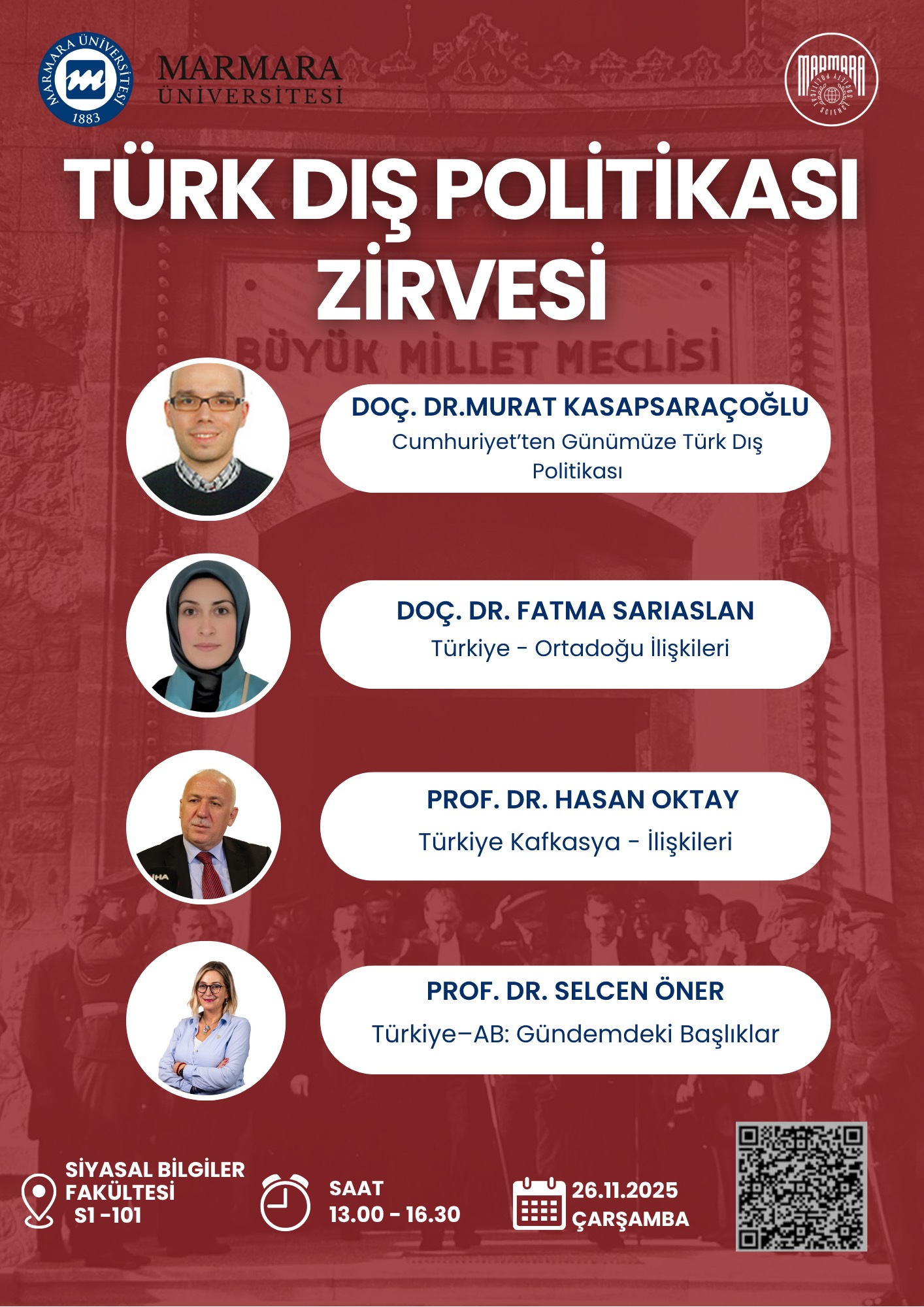 Türk Dış Politikası Zirvesi’nin temel amacı, öğrencilerin Türkiye’nin dış politikasını farklı boyutlarıyla bütüncül bir şekilde kavramasını sağlamaktır. Zirve kapsamında Türkiye’nin Cumhuriyet’in kuruluşundan günümüze uzanan dış politika çizgisi ele alınmakta; tarihsel dönüşümler, temel kırılma anları ve güncel yaklaşımlar akademik bir çerçevede değerlendirilmektedir. Bunun yanında Türkiye’nin Orta Doğu’daki konumu, bölgeyle geliştirdiği siyasi, ekonomik ve güvenlik temelli ilişkiler; Kafkasya’da izlediği stratejik hat ve bölgesel dengelere etkisi; Batı ile ilişkilerinde yaşanan değişimler, AB süreci ve transatlantik bağlamdaki güncel başlıklar da oturumlarda detaylı biçimde tartışılmaktadır. Böylece katılımcıların hem tarihsel perspektif edinmesi hem de günümüz dış politika dinamiklerini doğru şekilde yorumlayabilecek analiz yetkinliği geliştirmesi hedeflenmektedir. Zirve, uzman akademisyenler ve alanında yetkin konuşmacılar aracılığıyla öğrencilere içerik sunmayı amaçlamaktır.