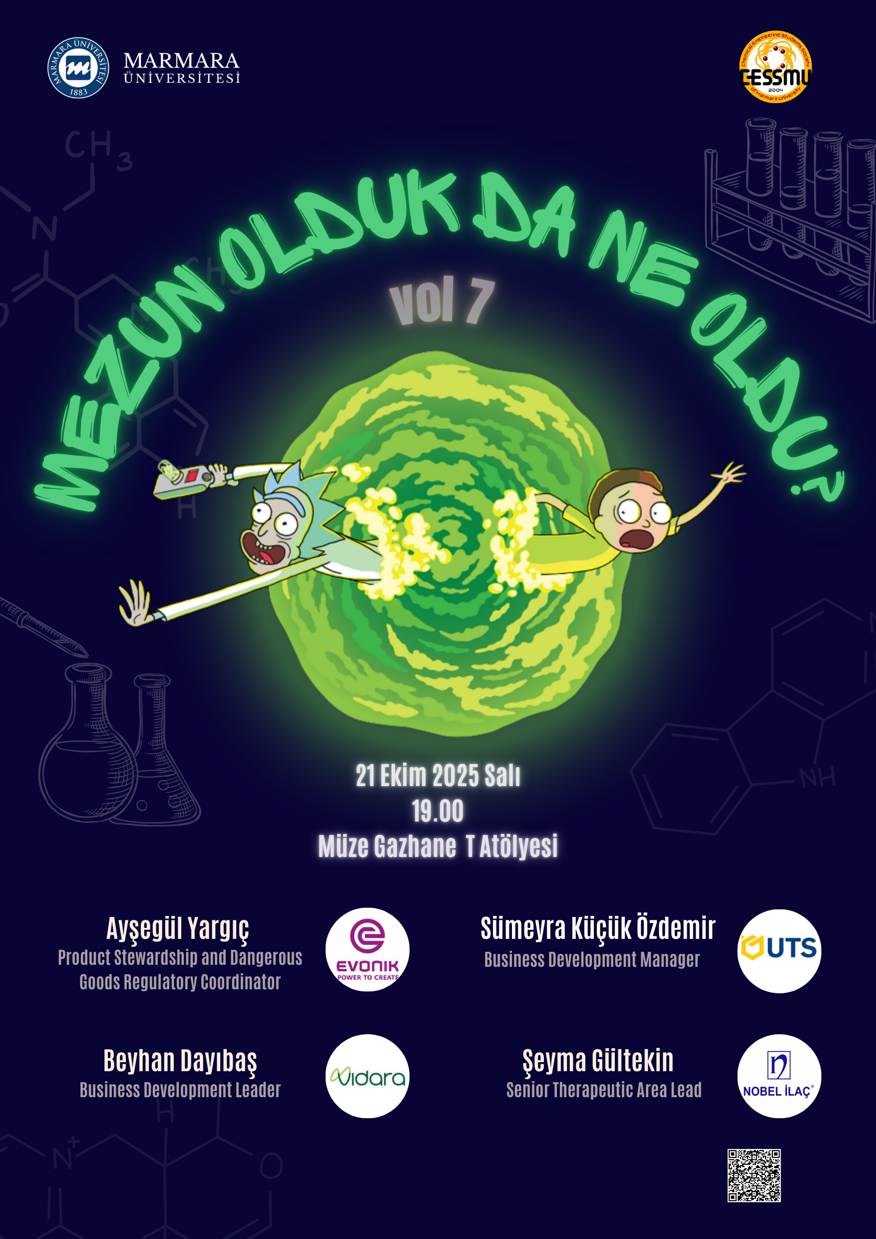 “Mezun Olduk Da Ne Oldu?” etkinliği, Kimya Mühendisliği öğrencilerinin mezuniyet sonrası kariyer süreçlerine dair farkındalık kazanmalarını sağlamak, mezunlarımızın iş ve akademik hayat tecrübelerinden yararlanarak öğrencilerimize sektörü daha yakından tanıtmak ve mezun-öğrenci iletişimini güçlendirmek amacıyla düzenlenmektedir. Etkinlik kapsamında öğrenciler, mezunlarımızla doğrudan etkileşim kurarak kariyer planlamalarına yön verebilmekte ve Mentor-Mentee programına katılım fırsatı elde etmektedir. Böylece etkinlik, hem mesleki gelişimi hem de bölüm içi dayanışmayı destekleyen bir paylaşım ortamı oluşturmayı hedeflemektedir.