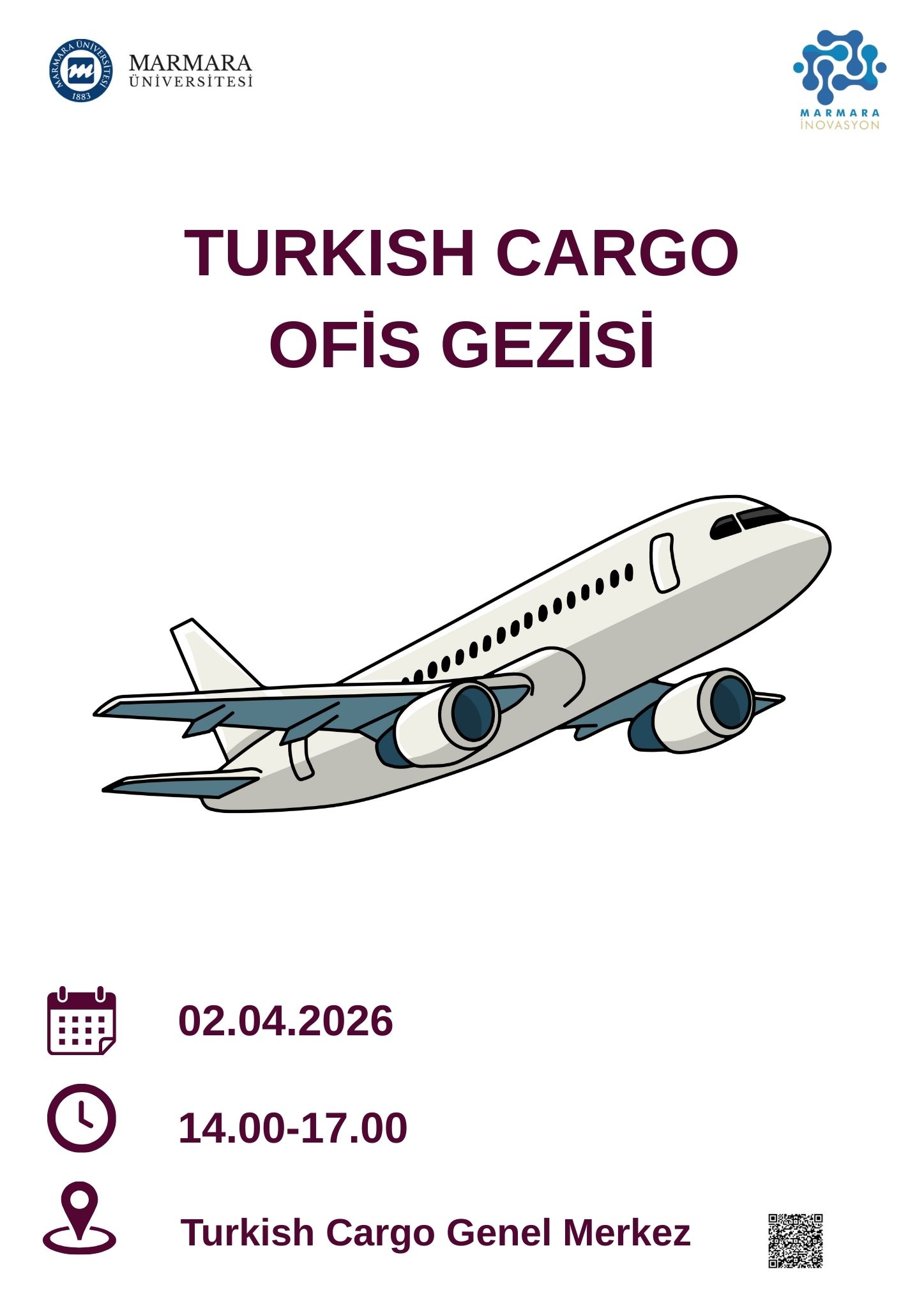 Turkish Cargo Ofis Gezisi etkinliğinin amacı; öğrencilerin lojistik, hava kargo taşımacılığı ve operasyon yönetimi süreçlerini yerinde gözlemleyerek teorik bilgilerini saha deneyimiyle pekiştirmelerini sağlamaktır. Etkinlik kapsamında katılımcıların kargo operasyon akışı, uluslararası taşımacılık süreçleri, organizasyon yapısı ve departmanlar arası koordinasyon hakkında bilgi edinmeleri hedeflenmektedir. Başta Marmara Üniversitesi öğrencileri olmak üzere lojistik, dış ticaret, işletme ve yönetim bilişim sistemleri alanlarına ilgi duyan tüm öğrencilerin sektör dinamiklerini yakından tanıması, kurumsal işleyişi gözlemlemesi ve kariyer farkındalığını artırması amaçlanmaktadır.