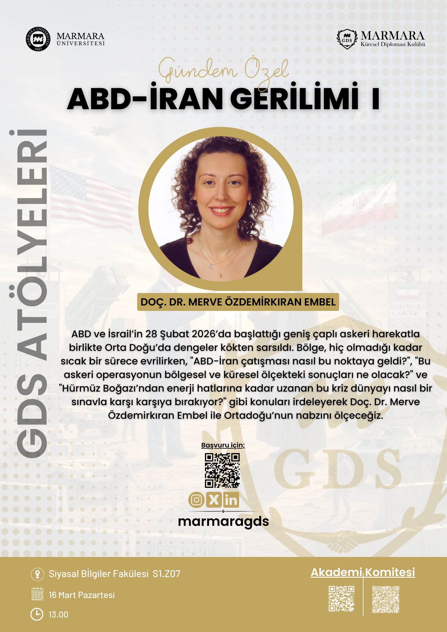 ABD ve İran arasındaki artan gerilimin tarihsel arka planı, bölgesel güvenlik dengeleri ve küresel enerji jeopolitiği üzerindeki etkileri ele alınacaktır. 28 Şubat 2026’da ABD ve İsrail’in başlattığı askeri operasyon sonrasında Orta Doğu’da değişen güç dengeleri, Hürmüz Boğazı’nın stratejik önemi ve bu krizin uluslararası sistem üzerindeki olası siyasi, ekonomik ve güvenlik sonuçları akademik bir perspektifle değerlendirilecektir.