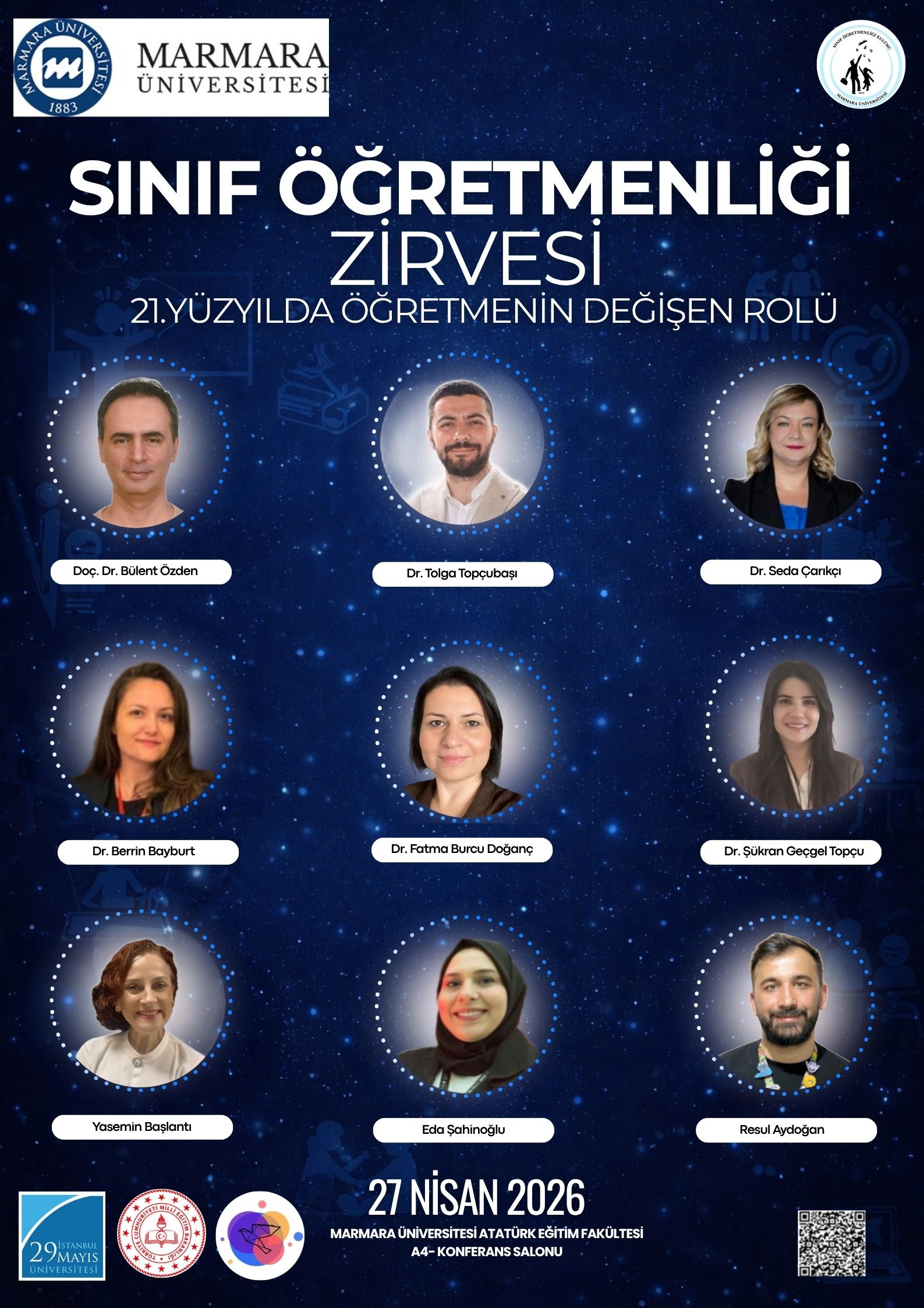 Amaç: Geleceğin öğretmen adaylarını alanında uzmanlarla bir araya getirerek mesleki gelişimlerini desteklemek ve 21. yüzyılda öğretmenin değişen rolünü aktarmak. Hedef: Katılımcıların eğitimde dönüşüm, dijital araçlar ve çağın gerektirdiği pedagojik yaklaşımlar hakkında bilgi sahibi olmalarını sağlamak; uygulama temelli atölyelerle deneyim kazandırmak. Hedef Kitle: Sınıf öğretmenliği bölümü öğrencileri, öğretmen adayları ve erken kariyer öğretmenler.