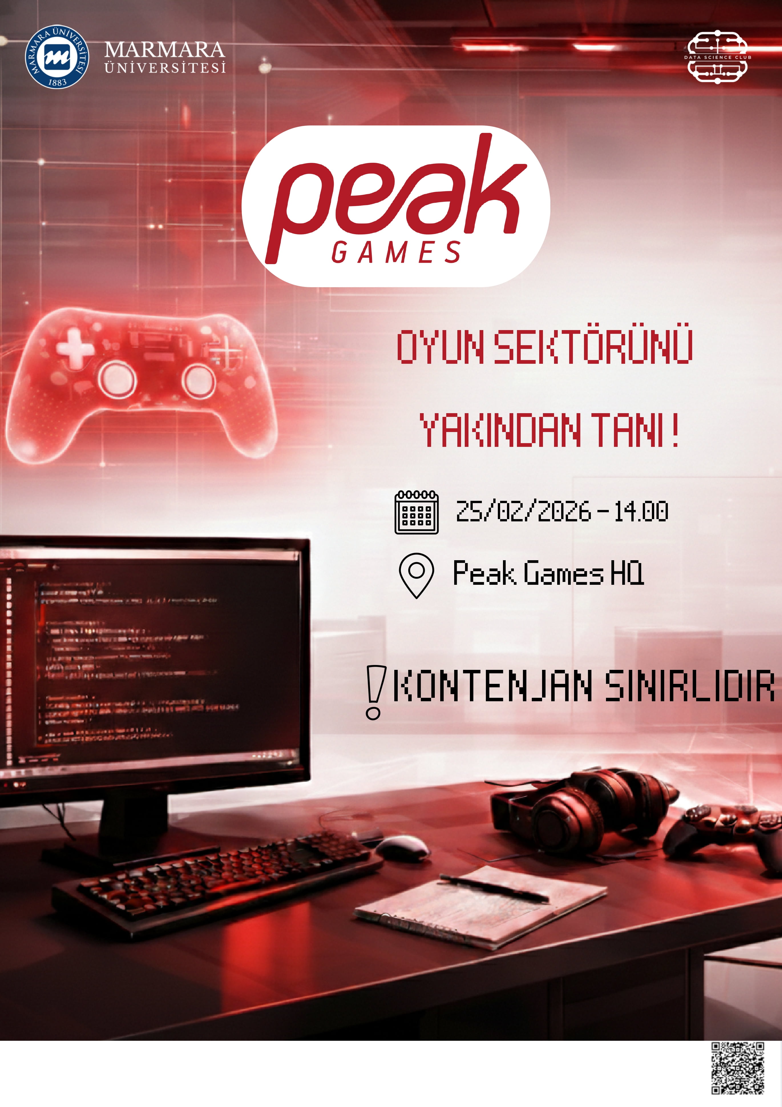 Peak Games’e gerçekleştirilecek teknik gezi kapsamında öğrencilerin oyun teknolojileri, mobil oyun geliştirme süreçleri ve veri odaklı ürün geliştirme yaklaşımları hakkında bilgi edinmeleri amaçlanmaktadır. Etkinlik; başta istatistik, veri bilimi, yazılım ve mühendislik alanlarında eğitim gören öğrenciler olmak üzere oyun teknolojilerine ilgi duyan tüm üniversite öğrencilerine yöneliktir. Bu ziyaret ile katılımcıların oyun sektörünün dinamiklerini yerinde gözlemlemeleri, veri analitiğinin oyun geliştirme süreçlerindeki rolünü öğrenmeleri ve sektör profesyonelleriyle bir araya gelerek kariyer fırsatlarını değerlendirmeleri hedeflenmektedir. Aynı zamanda üniversite–sektör iş birliğinin güçlendirilmesi ve öğrencilerin teknoloji ve oyun sektörüne yönelik farkındalıklarının artırılması amaçlanmaktadır.