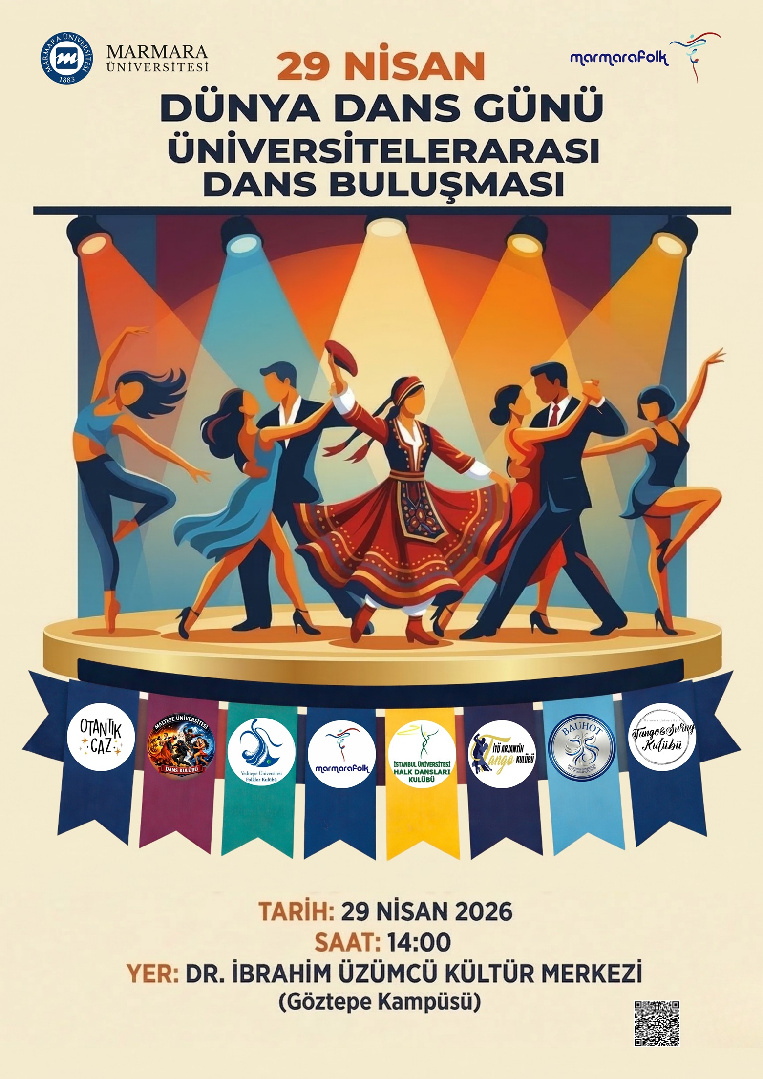 29 Nisan Dünya Dans Günü kapsamında, Marmara Üniversitesi ana ev sahipliğinde Dr. İbrahim Üzümcü Kültür Merkezi'nde geniş çaplı bir "Üniversitelerarası Dans Buluşması" düzenlenecektir. Amacımız; farklı üniversitelerin dans kulüplerini tek sahnede buluşturarak öğrenciler arası çok kültürlü bir sanat ortamı yaratmak ve kurumlar arası kültürel etkileşimi güçlendirmektir. Bu doğrultuda İstanbul, Yeditepe, Bahçeşehir, Maltepe ve İTÜ üniversitelerinin de katılımıyla toplam 6 üniversite ve 8 dans kulübünden yaklaşık 80 dansçıyı sahnemizde ağırlayacağız. Organizasyonda geleneksel halk oyunları ve Kafkas'tan tango, bachata, salsa, swing ve hip-hop'a uzanan zengin bir gösteri yelpazesi sunulacaktır. Hedef kitlemiz; başta kendi öğrencilerimiz ve personelimiz olmak üzere, misafir üniversitelerin öğrencileri ve tüm sanatseverlerdir. Bu projeyle, üniversitemizin sanata verdiği değeri somutlaştırarak kurumlar arası prestijimizi en üst düzeye çıkarmayı hedefliyoruz.