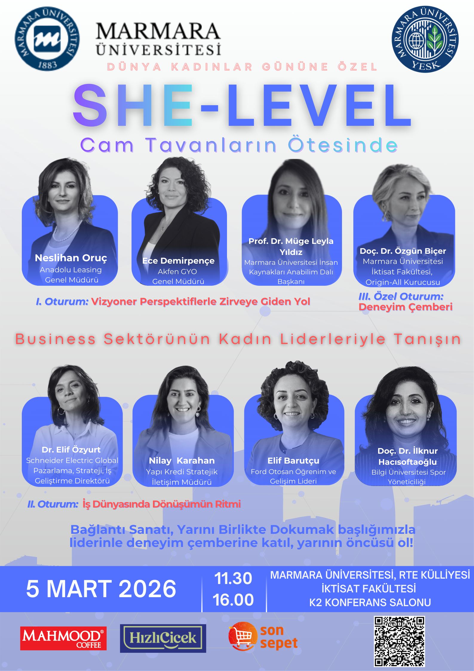 She-Level: Cam Tavanların Ötesinde, iş dünyasında kadınların liderlik yolculuğunu, karşılaştıkları görünmez engelleri (cam tavan), bu engelleri aşma stratejilerini ve dönüşen iş dünyasında kadın liderlerin rolünü ele alan bir kariyer ve ilham etkinliğidir. Etkinlik; liderlik, kurumsal dönüşüm, iletişim gücü, kariyer inşası ve güçlü network oluşturma başlıklarına odaklanır.