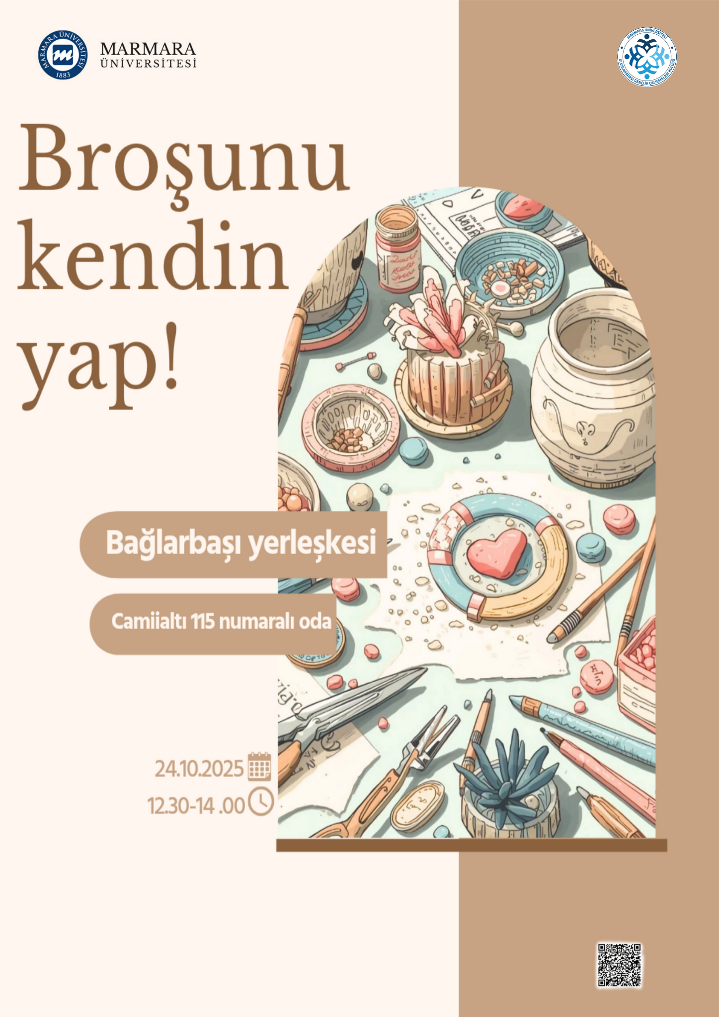 Bu etkinlik, öğrencilerin yaratıcılıklarını ortaya koyarak el becerilerini geliştirmelerini ve keyifli bir üretim süreci yaşamalarını amaçlamaktadır. Katılımcılar doğal kil malzemesiyle kendi broşlarını tasarlayarak hem sanatsal yönlerini keşfedecek hem de stres atma fırsatı bulacaktır. Etkinlik, farklı bölümlerden öğrencileri bir araya getirip sosyalleşmeyi teşvik ederken sürdürülebilir üretim farkındalığını da artırmayı hedefler. Hedef kitle, el sanatlarına, tasarıma ve kendin yap kültürüne ilgi duyan tüm üniversite öğrencileridir.