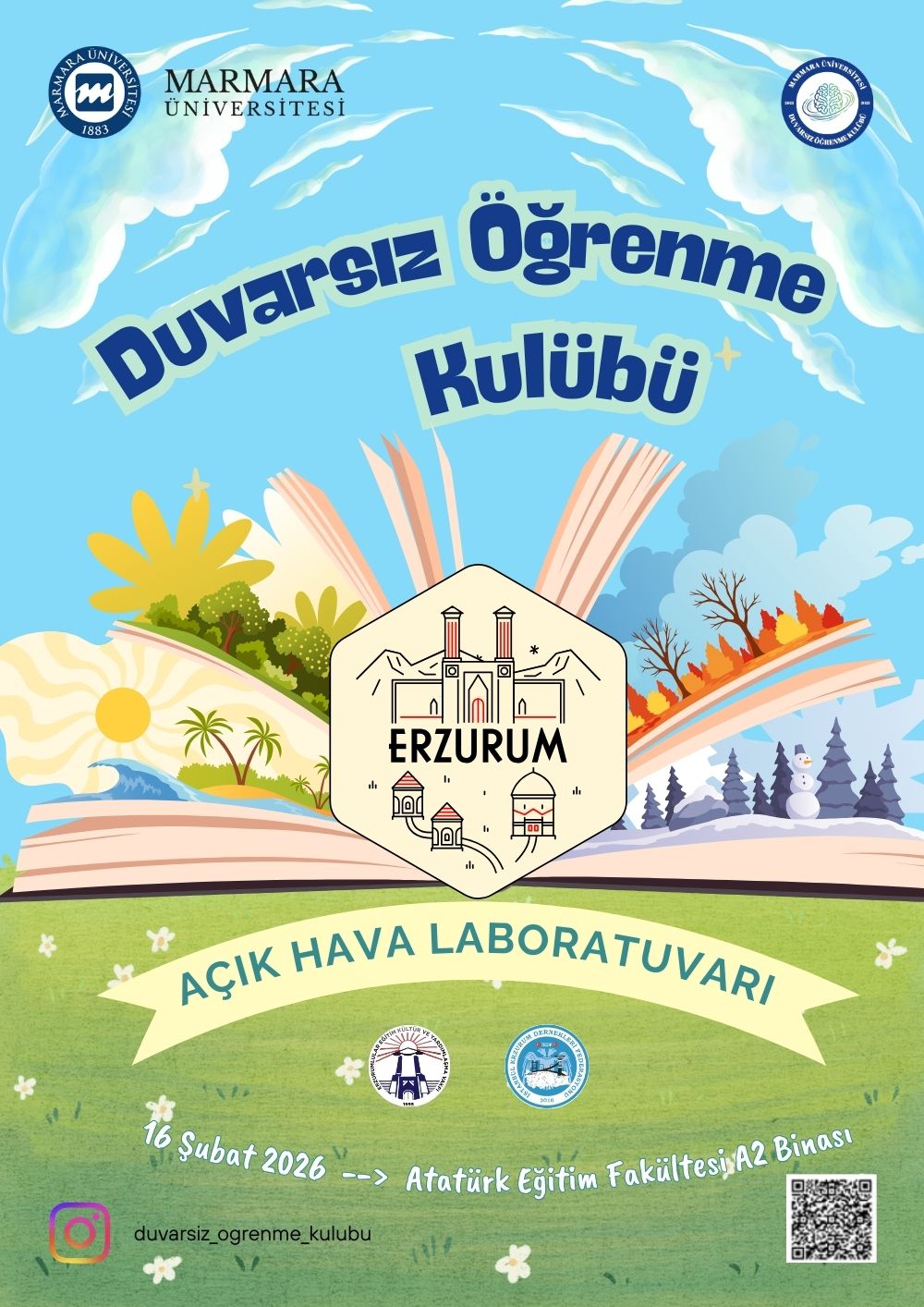 ETKİNLİK ADI: Açık Hava Laboratuvarı: Erzurum ETKİNLİK KONUSU: "Duvarsız Öğrenme" felsefesi, eğitimin dört duvar arasına sıkışmadığı, doğayla, şehirle ve hayatın kendisiyle iç içe olduğu bir yaklaşımı savunur. Erzurum gibi köklü bir tarihe, kendine has bir coğrafyaya ve zengin bir kültüre sahip bir şehir, okul öncesi öğretmen adayları için harika bir "açık hava laboratuvarı" sunar. Bu bağlamda etkinliği gerçekleştirebilmek amacıyla Erzurum Eğitim Kültür ve Yardımlaşma Vakfı ve İstanbul Erzurum Dernekleri Federasyonu tarafından şehri tanıtan bir sunum gerçekleştirilecektir. Şehrin kültürel dokusu ve özelliklerinin tanıtıldığı sunumu desteklemek üzere kulüp tarafından duvarsız öğrenme etkinlik örnekleri gerçekleştirilecektir. Etkinliğin Amacı: Öğretmen adaylarının Erzurum kent kültürüne ilişkin öğeleri okul dışı öğrenme örneği olabilecek etkinliklerle deneyimlemelerini sağlamak Uygulama: Erzurum kültürüne ait nesnelerin bulunduğu bir bavul içinde oyunlarda kullanabilecek objeler sergilen