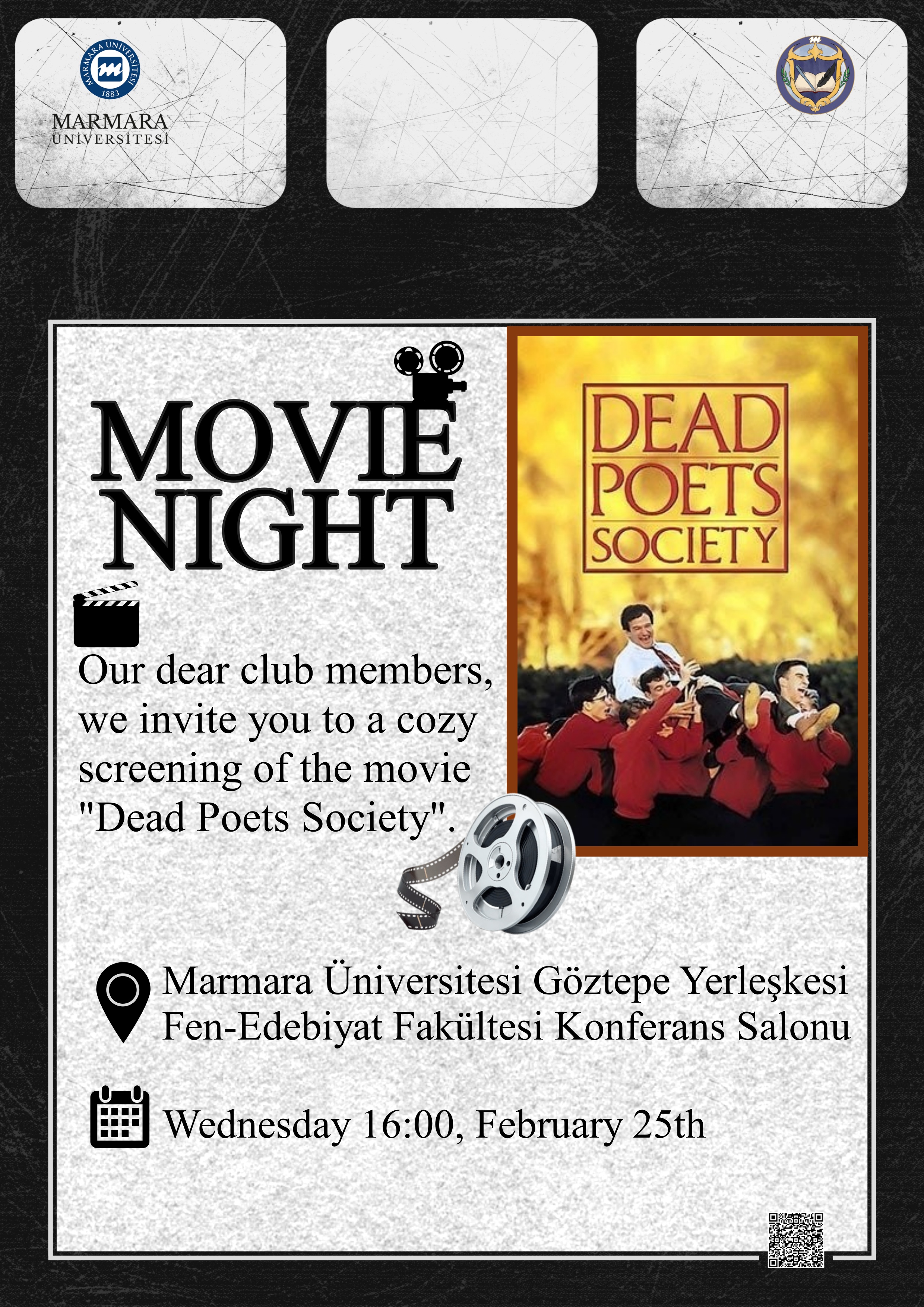 Etkinliğimiz bir film gecesiyle birlikte üyelerimize hep bir arada İngiliz Edebiyatını yakından ilgilendiren bir film sunmayı amaçlıyor. Hedefimiz, kulüp üyelerimize ilgili olduğumuz alan hakkında ufuklarını açacak bir gösterim sergilemek. Hedef kitlemiz, kulübümüze değerleri için yani İngiliz Kültürü ve Edebiyatı için katılan tüm üyelerimizi kapsıyor. Etkinliğin yapılma amacı hem üyelerimiz için keyifli bir ortam oluşturmak, hem de onları kulübümüze ısıtacak bir sosyal etkinlik yapmaktır.