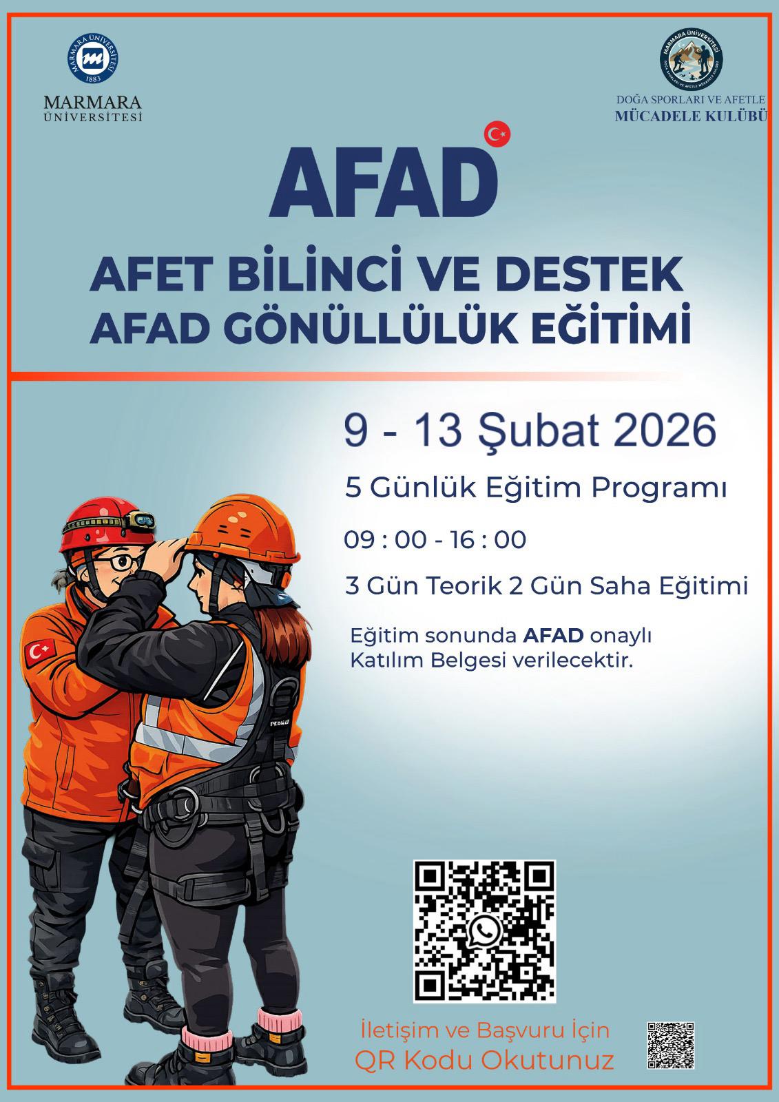 Doğa Sporları ve Afetle Mücadele Kulübü bünyesinde gerçekleştirilecek olan AFAD eğitim programı; doğa sporları faaliyetlerindeki riskleri minimize etmek ve üyelerimize profesyonel arama-kurtarma yetkinliği kazandırmak amacıyla düzenlenmekte olup, temel hedefi tüm katılımcıların sertifikalı birer AFAD gönüllüsüne dönüşerek kriz anlarında sistemli müdahale becerisi kazanmalarını sağlamaktır. Kulüp üyelerimiz ve üniversite öğrencilerinden oluşan hedef kitlemizi afetlere karşı bilinçli birer lider haline getirmeyi amaçlayan bu etkinlik; kampüs genelinde güvenlik kültürünü yaygınlaştırmak, olası afet durumlarında toplumsal fayda üretebilecek donanımlı bir ekip yapısı oluşturmak ve öğrencilerimizin sosyal sorumluluk bilincini profesyonel bir disiplinle birleştirmek adına hayati bir önem taşımaktadır.