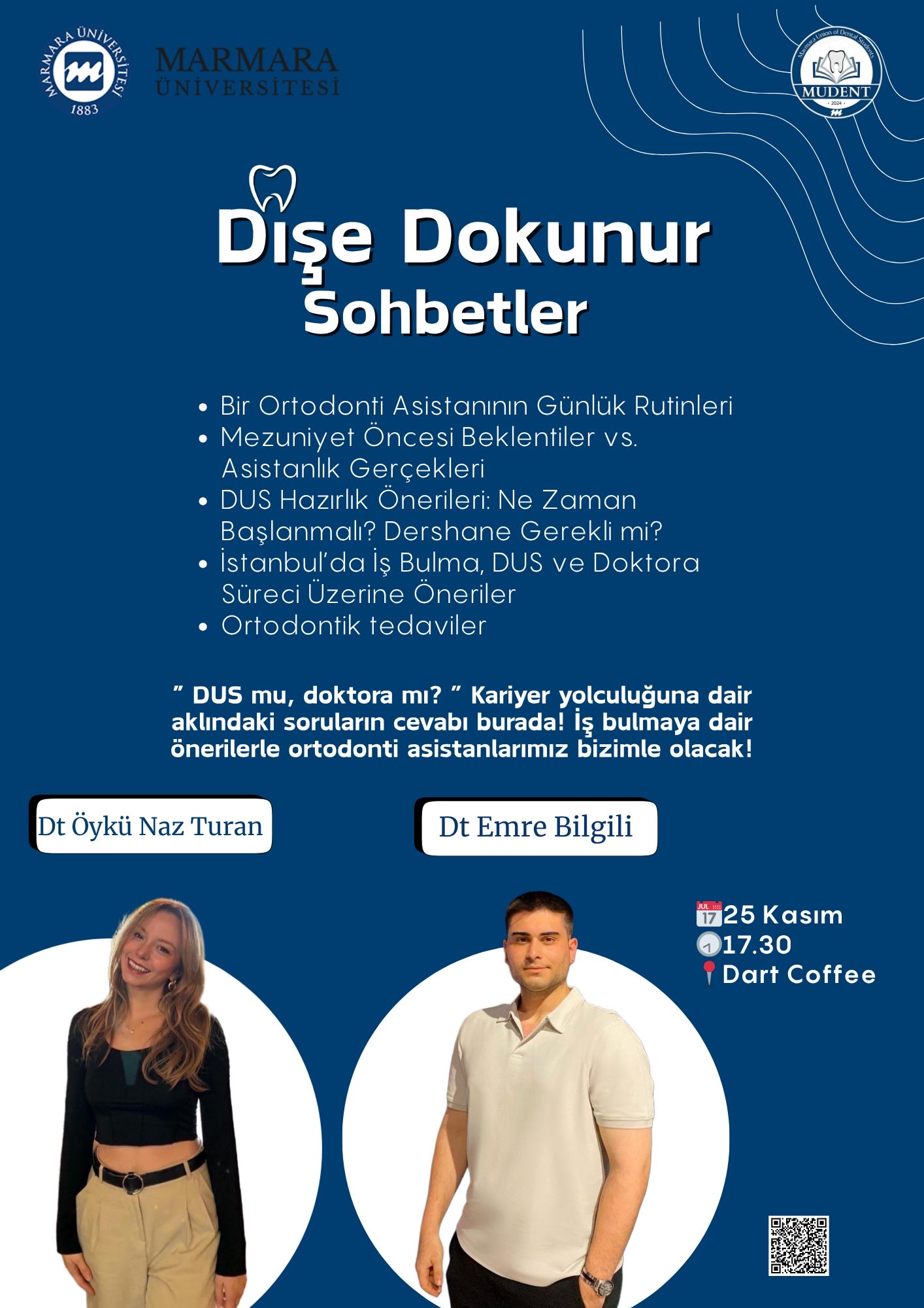 Diş hekimliği kariyerinize ilham katacak “Dişe Dokunur Sohbetler” serisinin yeni sezonunun yeni bölümünde ortodonti asistanları Dt. Öykü Naz Turan ve Dt. Emre Bilgili ile bir araya geliyoruz!