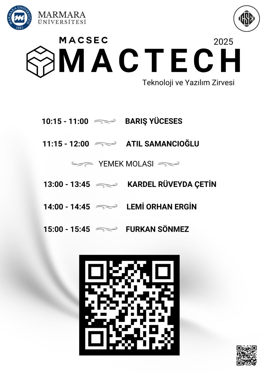 Bu etkinliğimizde beş farklı oturumda toplam beş farklı katılımcılarımızın tecrübeleri, fikirleri, piyasaların durumu; yüzlerce arkadaşımız ile beraber dinlenecek. Yazılım ve teknoloji dünyasının kapılarını beraber aralanacak. Çeşitli hediyelerin ve çekilişlerin de yapılacağı etkinliğimizde, üyelerimiz sponsorlarımızın stantlarını ziyaret edebilir veya yapay zeka resim oyunumuzu oynayabilirler. Değişen dünyaya uyum içinde olabilmemiz geleceğin mühendisleri ve daha nice meslek grupları için önemli olacaktır, bilgisayar mühendisliği öğrencileri başta olmak üzere teknolojiye, yeniliklere ve yapay zekaya ilgisi olan öğrencilerimize yönelik düzenlediğimiz büyük teknoloji zirvemiz MACTECH sadece öğrencilerin okullardan, kaynaklardan, kitaplardan öğrendiği teorik eğitimle sınırlı kalmayacak, sektördeki insanların da tecrübeleri ışığında bizim fikirlerimize ışık tutacaktır.