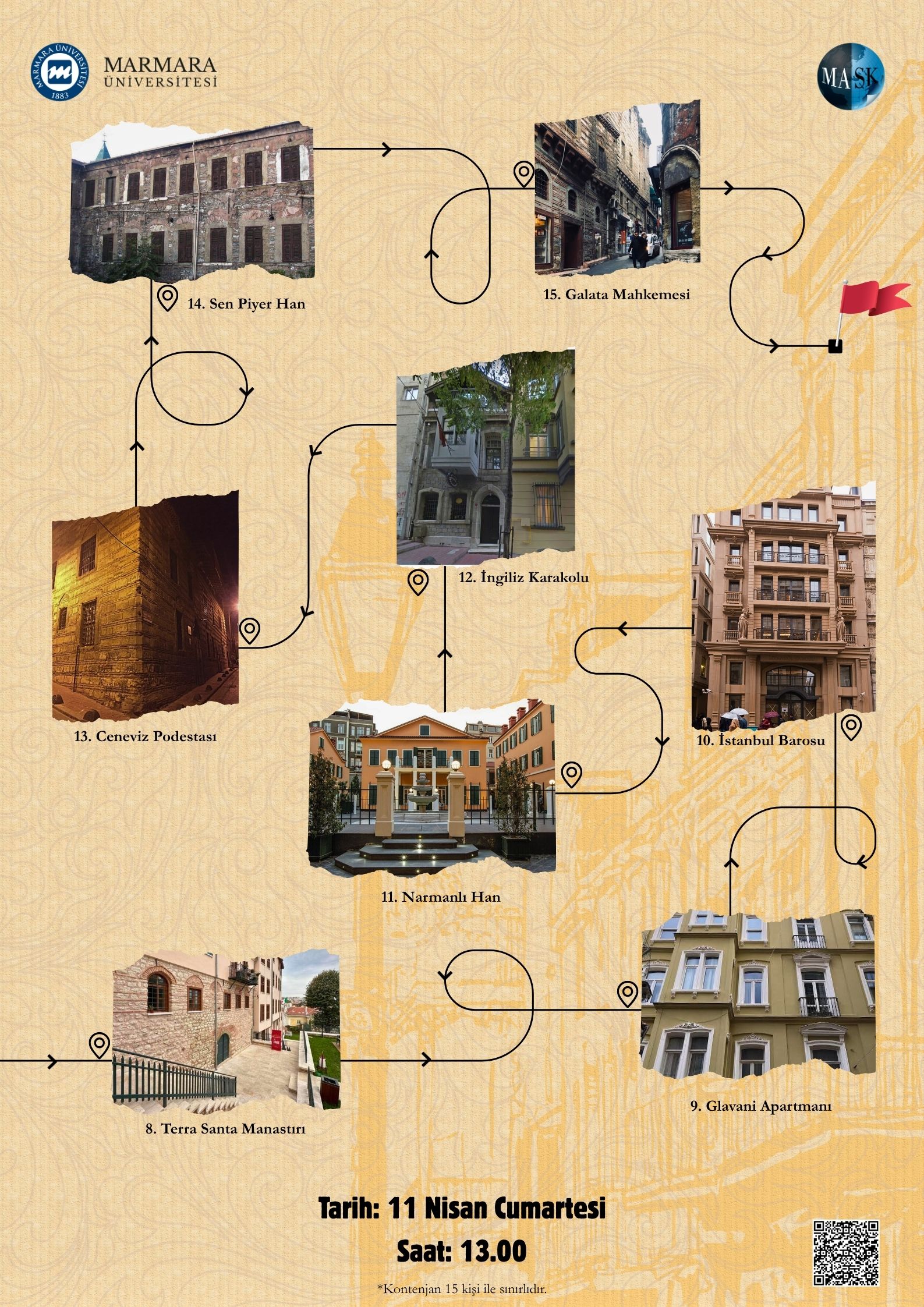 • 11.04.2026-13:00:15:00 | Üniversite Dışı Faaliyetler / Üniversite Dışı Hazzopulo Pasajı/ Beyoğlu Beyoğlu'nda hukuk ile ilgili tarihi mekanlara düzenlenecek bir gezidir.