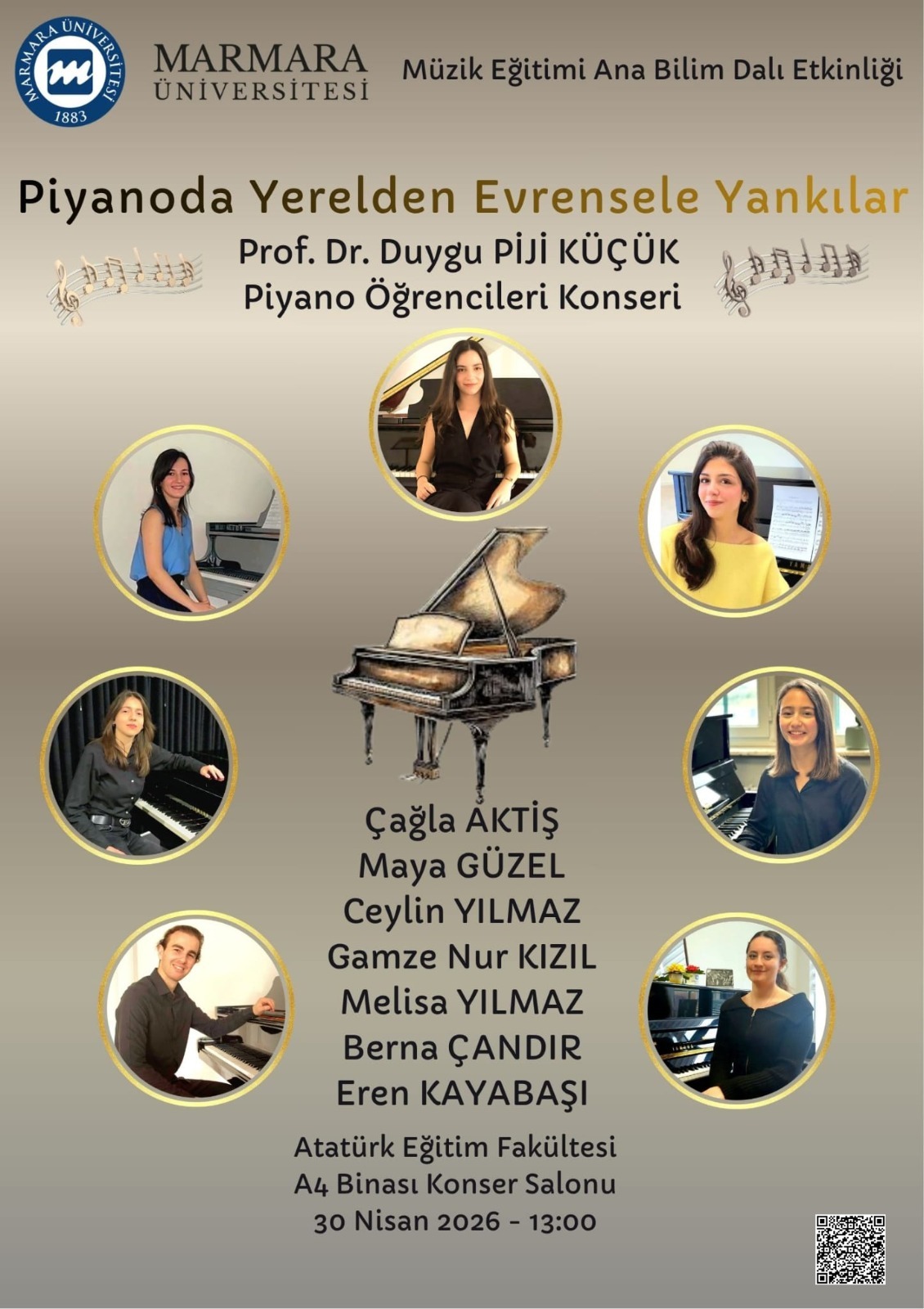 Piyanoda Yerelden Evrensele Yankılar (Prof. Dr. Duygu Piji Küçük Piyano Öğrencileri Konseri) Konserde J. S. Bach, J. Haydn, F. Chopin, C. Debussy, W. Gillock, F. Amirov, A. A. Saygun, C. R. Rey piyano eserlerine yer verilecektir.