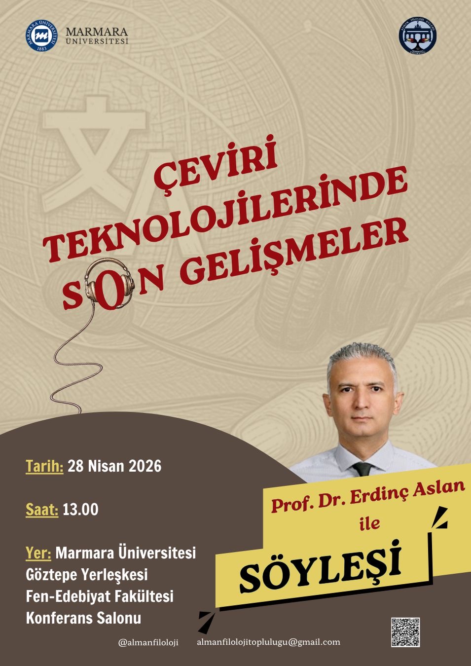 Marmara Üniversitesi Alman Filoloji Kulübü kapsamında, çeviri dünyasındaki güncel dijital araçların ve yeniliklerin konuşulacağı "Çeviri Teknolojilerinde Son Gelişmeler" temalı bir söyleşi programı düzenlenmektedir. Etkinlikte; hızla gelişen çeviri yazılımları ve bu teknolojilerin çeviri pratiği ile sektöre olan genel etkileri ele alınacaktır.