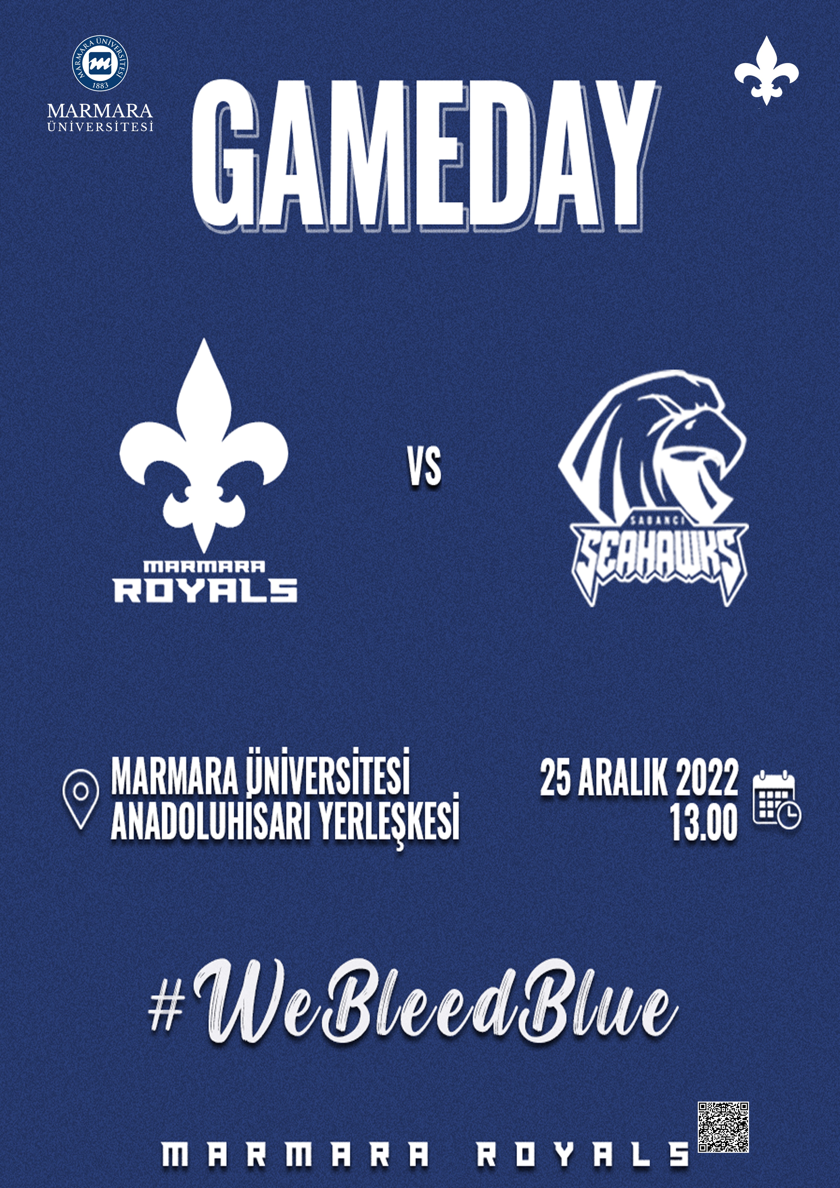 Üniversiteler Spor Ligi korumalı futbol branşında A grubunda mücadele edecek olan Marmara Üniversitesi korumalı futbol takımı Marmara Royals ile Sabancı Üniversitesi korumalı futbol takımı Seahawks takımı müsabakasına kulüp olarak izlemeye ve okul takımımızı desteklemeye gidilecek. Kulüp olarak korumalı futbolun tanıtımı, okulumuzun temsil etmek ve kulübümüzü tanıtmaktır.