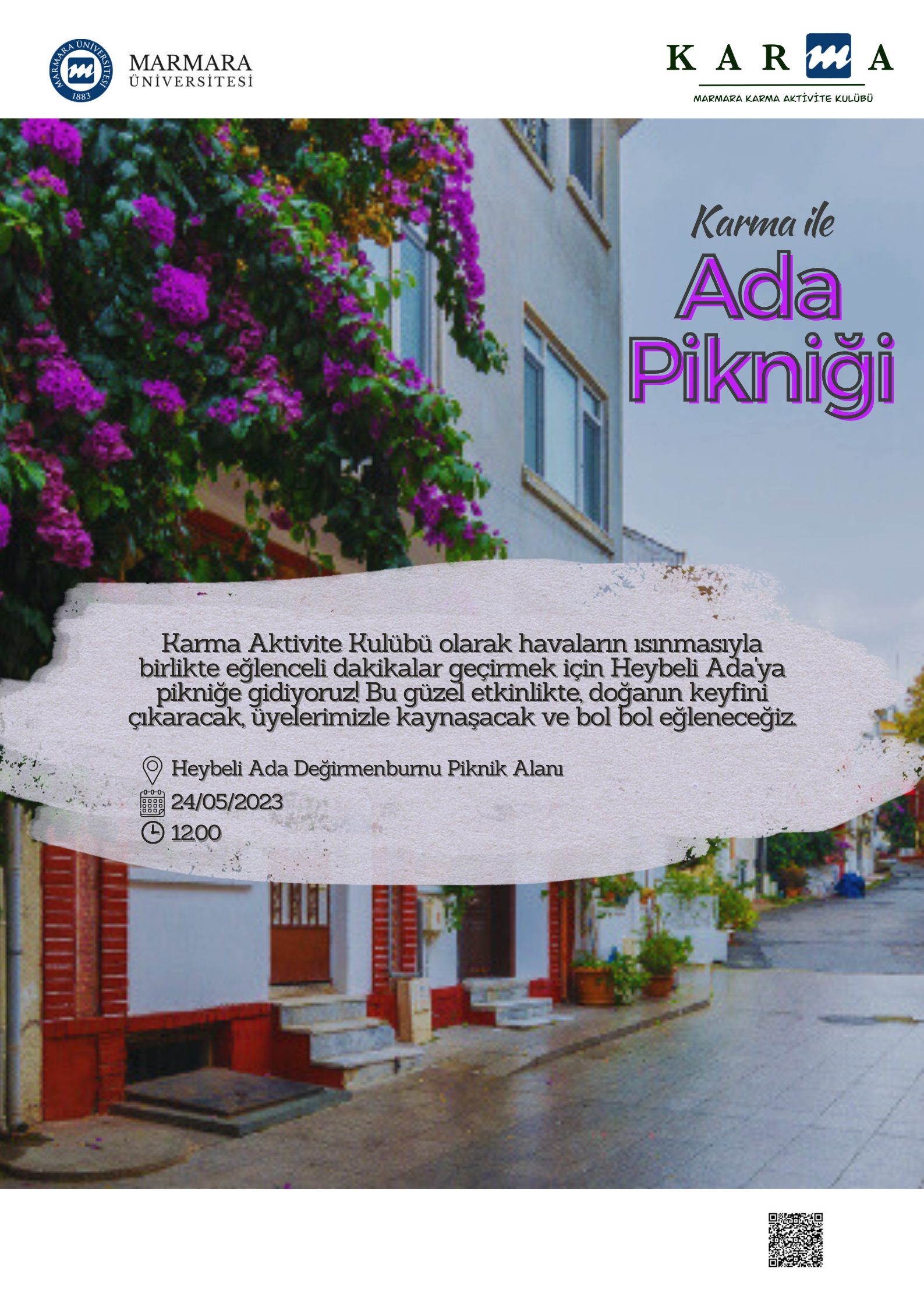 Karma Aktivite Kulübü olarak havaların ısınmasının tadını çıkarmak için Heybeli Ada pikniği yapmayı planlıyoruz. Heybeli Adayı yılın bu vakitlerinde gezilmeye ve güzel havanın tadını çıkarmaya değer görüyoruz. Tüm Karma Aktivite Kulübü üyelerini davet ettiğimiz bu pikniğimizde doğanın keyfini çıkarmayı, güzel sohbetler ile arkadaşlık bağımızı kuvvetlendirmeyi amaçlıyoruz. İstanbul'un en güzel yerlerinden biri olan Heybeli Adaya daha önce ziyarette bulunmamış üyelerimize rehberlik etmek de etkinlik amaçlarımızdan biridir.