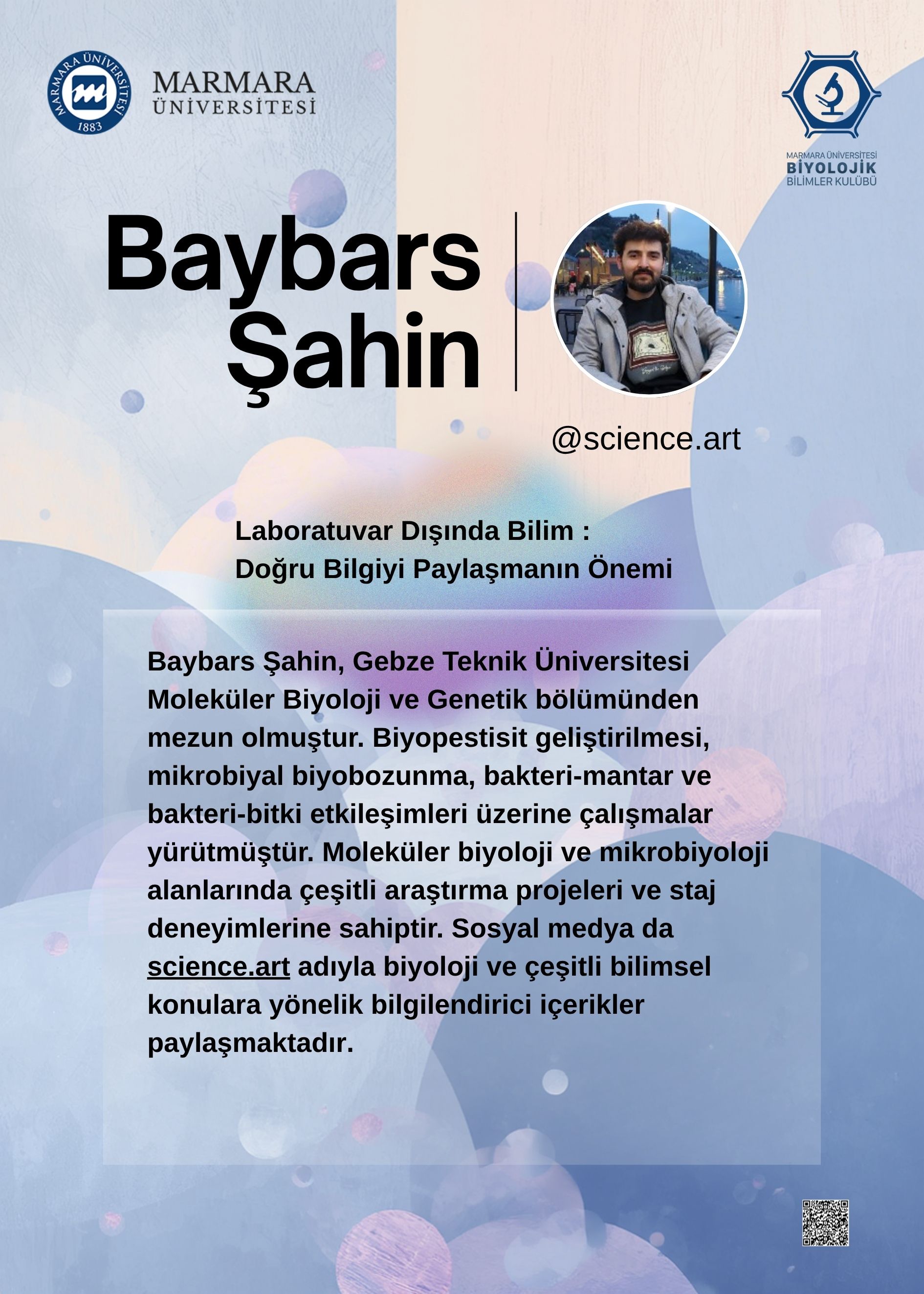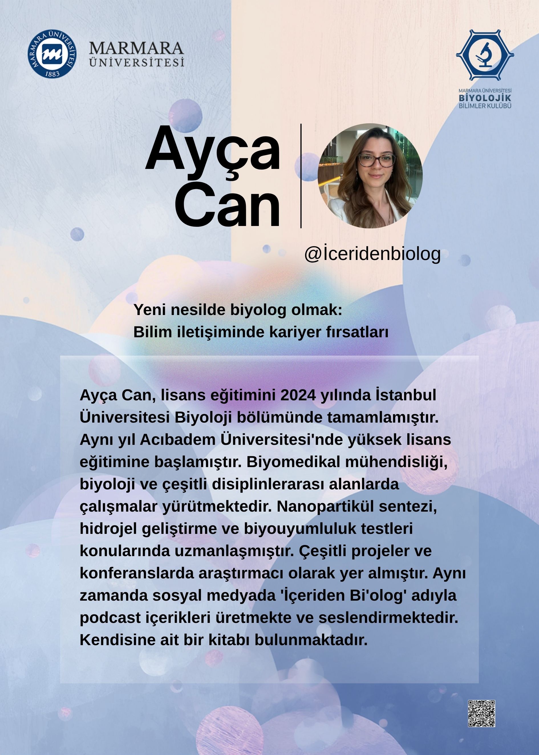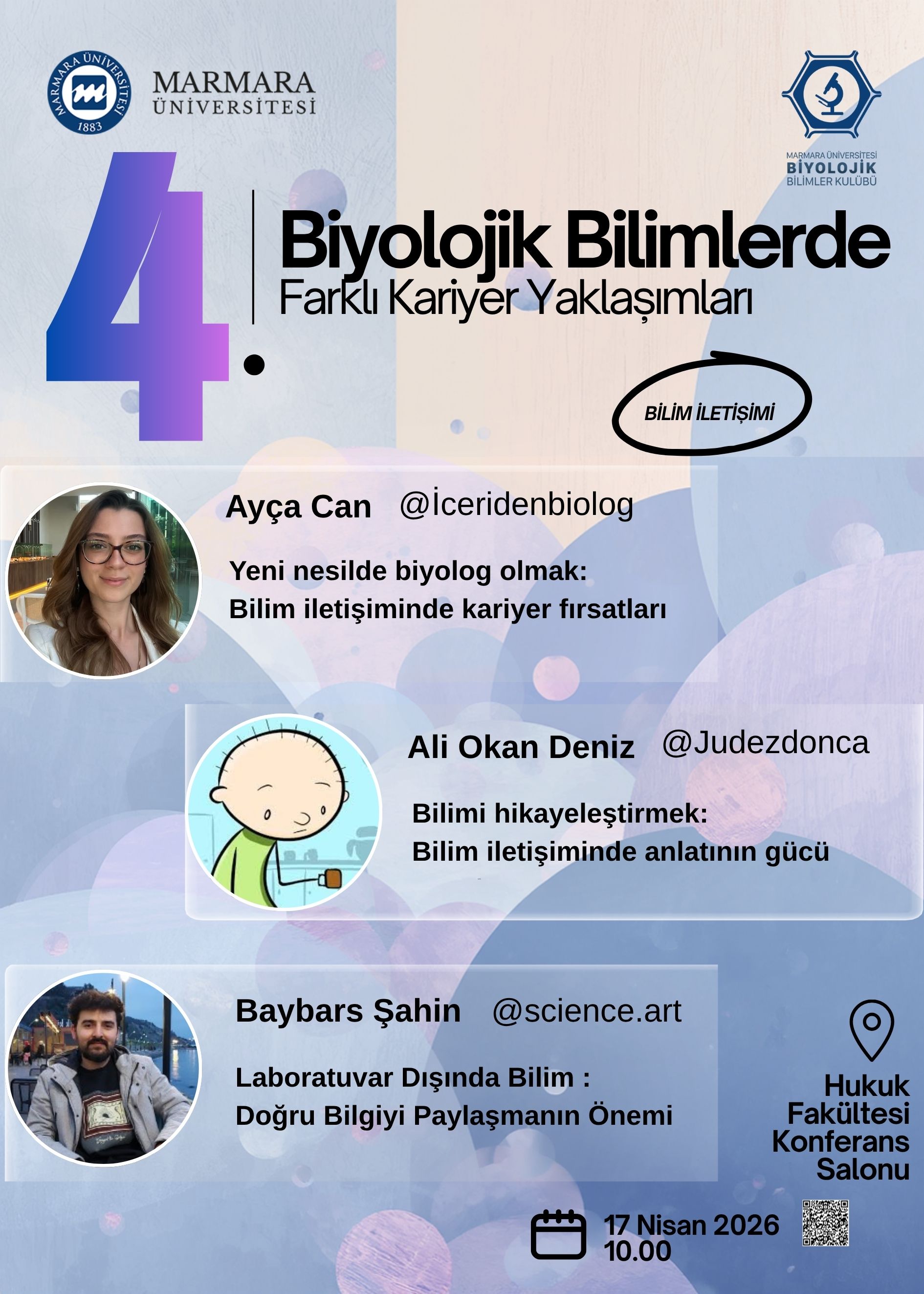 Hedef kitlemiz biyoloji alanındaki tüm öğrenciler olup, etkinliğin yapılma amacı biyolojinin sınırlı bir alan olmadığını ve farklı dallarda çalışma imkânı sunduğunu göstermektir. Etkinlikte Ayça Can “Yeni Nesil Biyolog Olmak: Bilim İletişiminde Kariyer Fırsatları”, Ali Okan Deniz “Bilimi Hikayeleştirmek: Bilim İletişiminde Anlatıcının Gücü” ve Baybars Şahin “İçerik Üretme Motivasyonu: Laboratuvar Dışında Bilim” başlıklarıyla katılımcılara bilgi ve deneyimlerini aktaracaktır.